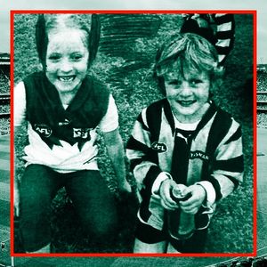 Five-year-old Audrey Barker, left, showing her Swans allegiance early on.