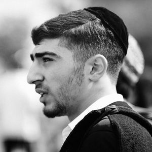 In his weekday commutes he'll disguise himself; he'll wear a hat over his kippah to avoid confrontation.