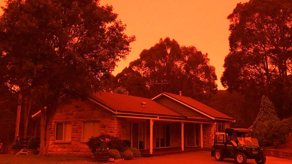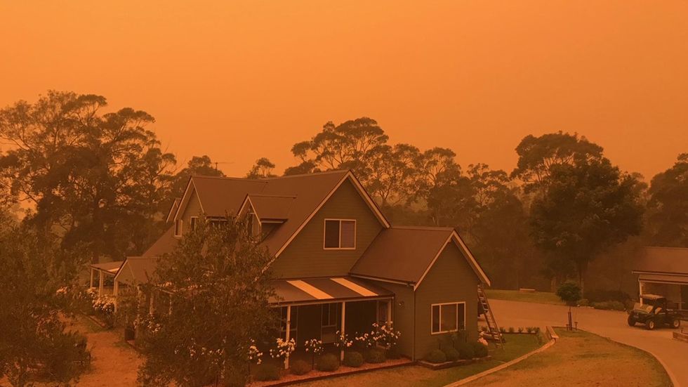 The eerie glow of the bushfire frames the cottage at 40 Corunna Road, Narooma.