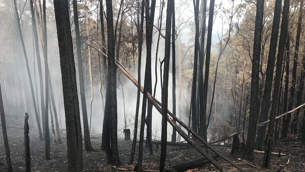 KYLIE WARRINGTON recalls the immediate aftermath of the fires as death itself. The eerie quiet, desolate plains, no animals, no sounds of any kind. Burnt cars by the side of the road, fields as black as night, trees still smouldering. A hellish landscape.Two years on, the scars remain. Fuzzy scorched trees, bald mountains and bright splashes of green regrowth are testament to that devastating summer.