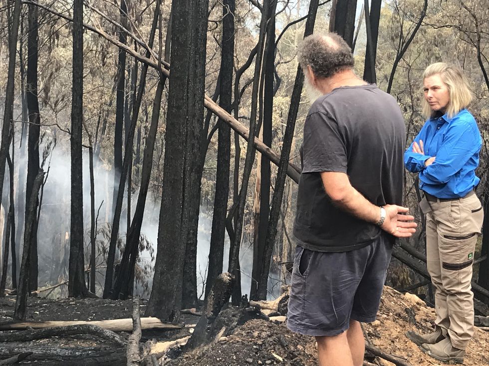 On January 6, Peter and Kylie were still on watch for embers as they raked up debris and picked up dead foliage. Dobbs, who had given them the crash course in firefighting a week earlier, came knocking. “The winds have died down, the fire should be no bigger than ankle height,” he said to the couple “Do you want to visit the fire front?”
