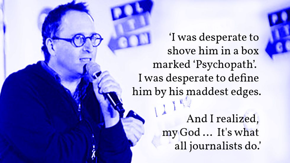 And I realised, my God — this is what I've been doing for 20 years. It's what all journalists do. We travel across the world with our notepads in our hands, and we wait for the gems. And the gems are always the outermost aspects of our interviewee's personality. And we stitch them together like medieval monks, and we leave the normal stuff on the floor."