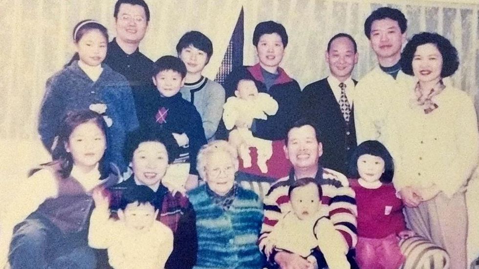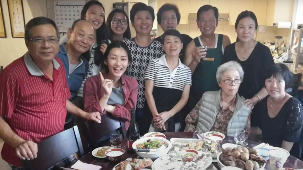 Gathering for the regular family dinner: Michelle Kuo, back row, second from left: Chen, back row, second from right, still loves to cook for them all regularly.