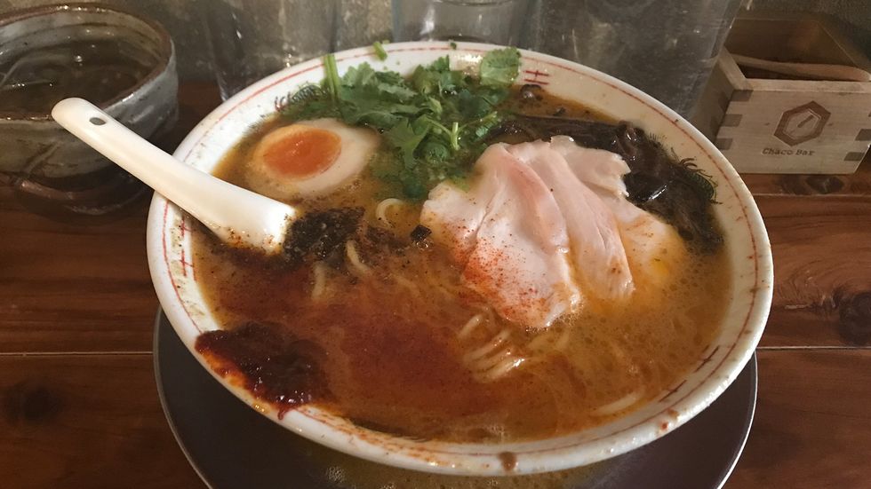 Chaco Ramen's chilli coriander ramen is the chef's favourite. The soy broth blended with a special spicy oil, al dente noodles and tender poached chicken create layers of flavour. Although it may be too spicy for some Aussie palates, it deserves a try.